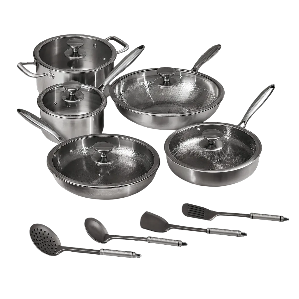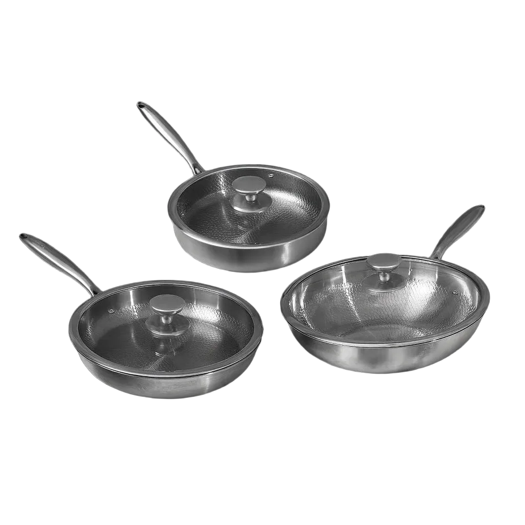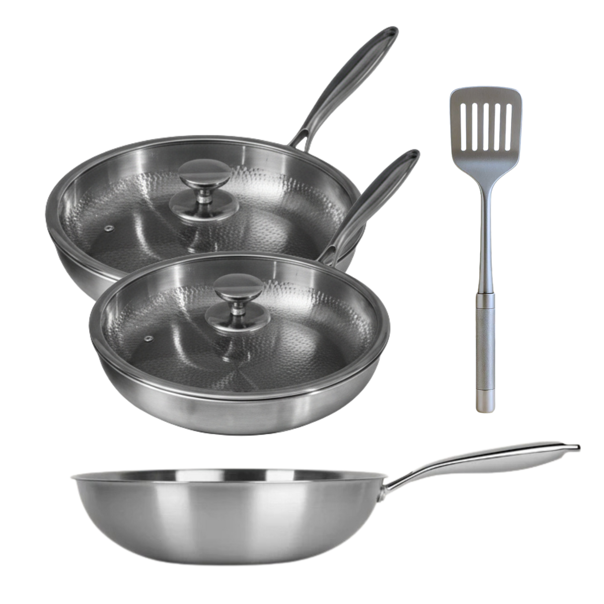 Veel "titanium pannen" die goedkoop worden aangeboden, zijn in werkelijkheid gemaakt van aluminium of staal met een titanium-effect coating. De onze zijn ontworpen om lang mee te gaan: zorgvuldig geselecteerde materialen, hoogwaardige afwerking en constante kwaliteitscontroles. Het resultaat is een betere duurzaamheid in de tijd (minder vervorming/slijtage) en betrouwbaardere prestaties.